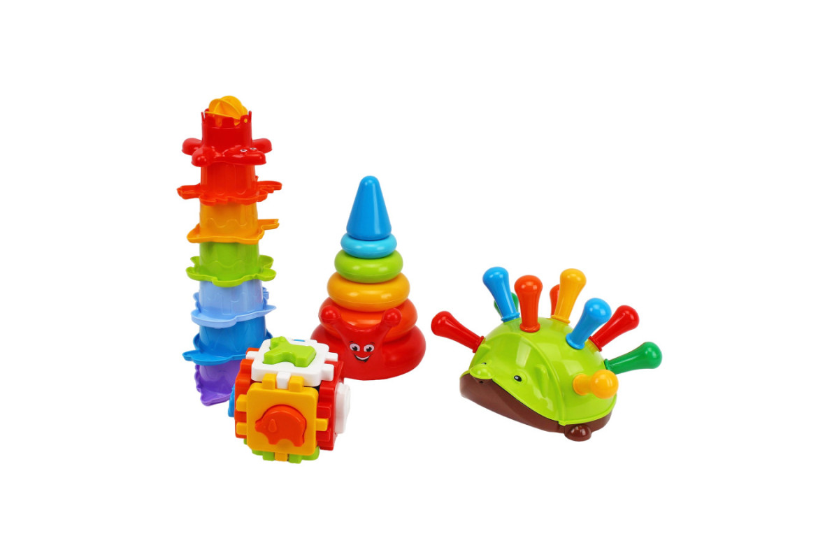Уявіть, як ваша дитина з захопленням збирає різнокольорові пірамідки, вставляє м'які голки в милого їжачка, вивчає тварин на кубику. Кожен елемент набору розроблений для розвитку важливих навичок: дрібної моторики, логіки, координації, вивчення кольорів та форм.