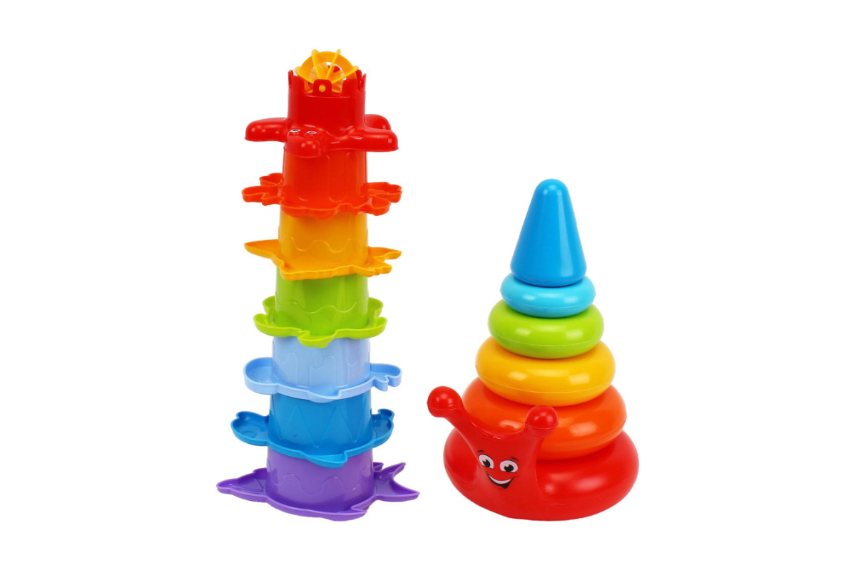 2. Пірамідка «Веселий павлик-равлик» з шести елементів сприяє розвитку логічного мислення та координації рухів, навчаючи дитину послідовно збирати фігурки.