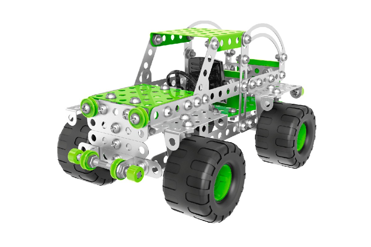 Конструктор має велику кількість деталей, що дозволяє створювати різноманітні варіації позашляховиків з унікальними характеристиками. Кожна деталь відповідає високим стандартам якості та міцності, забезпечуючи надійність конструкції та довговічність моделі.