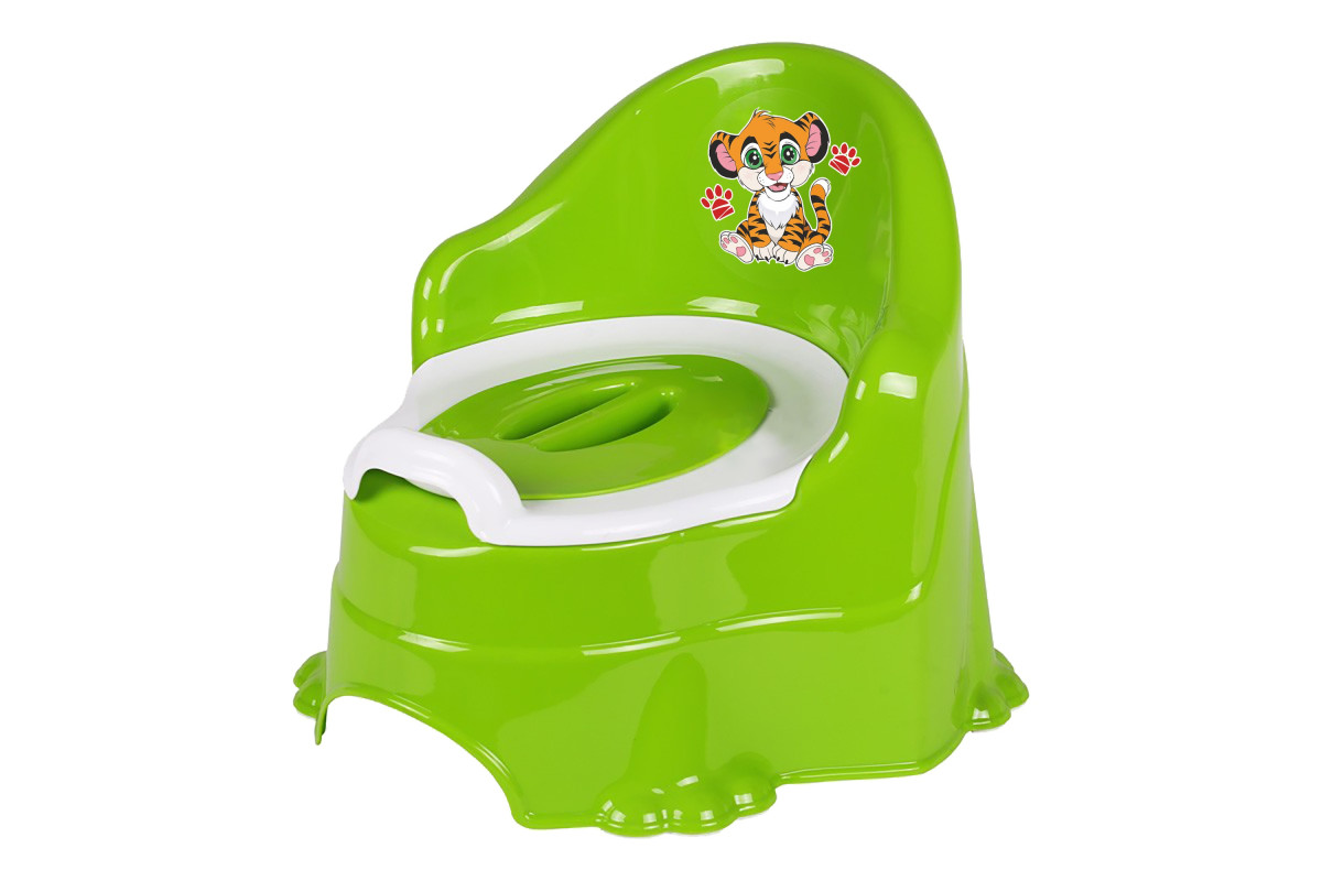 Горщик має округлі анатомічні форми, зручні для малюків. Стійка конструкція, висока спинка та підлокітники забезпечують комфорт та безпеку дитини. Внутрішній контейнер накривається кришкою. Його легко виймати та зручно мити. На ніжках є спеціальні накладки, що не ковзають.