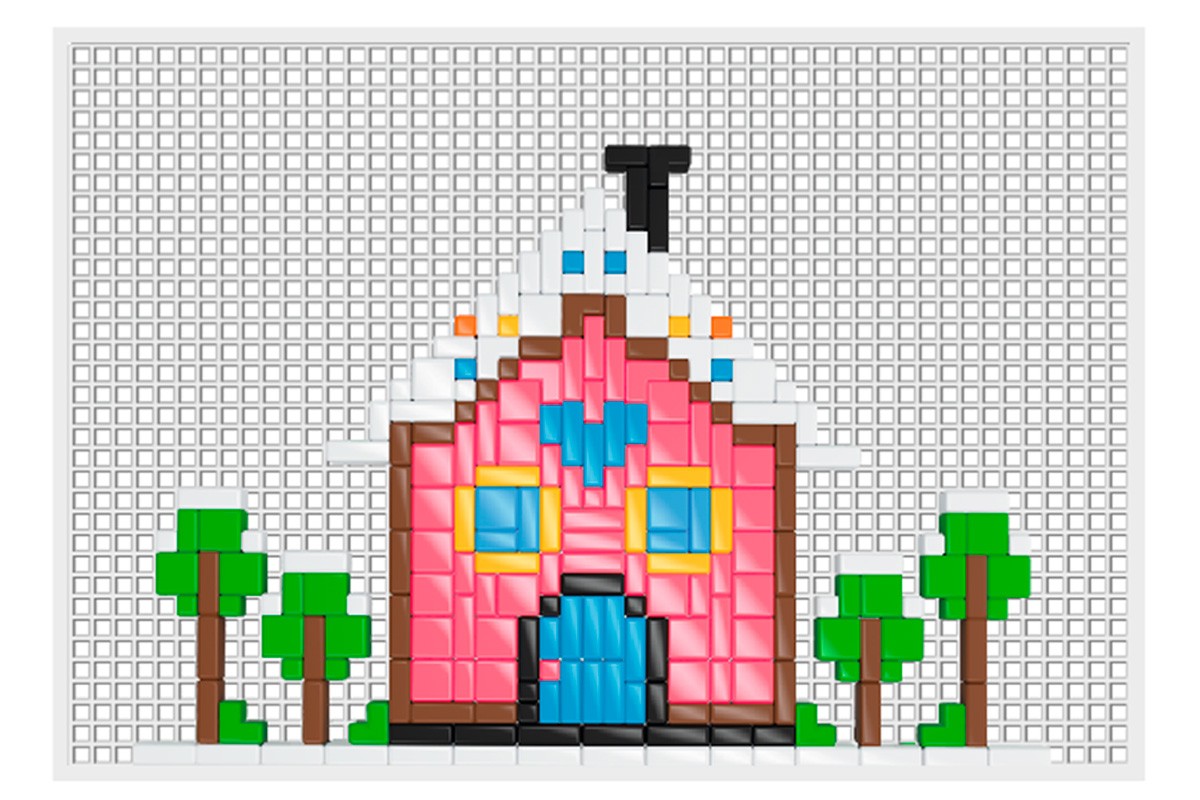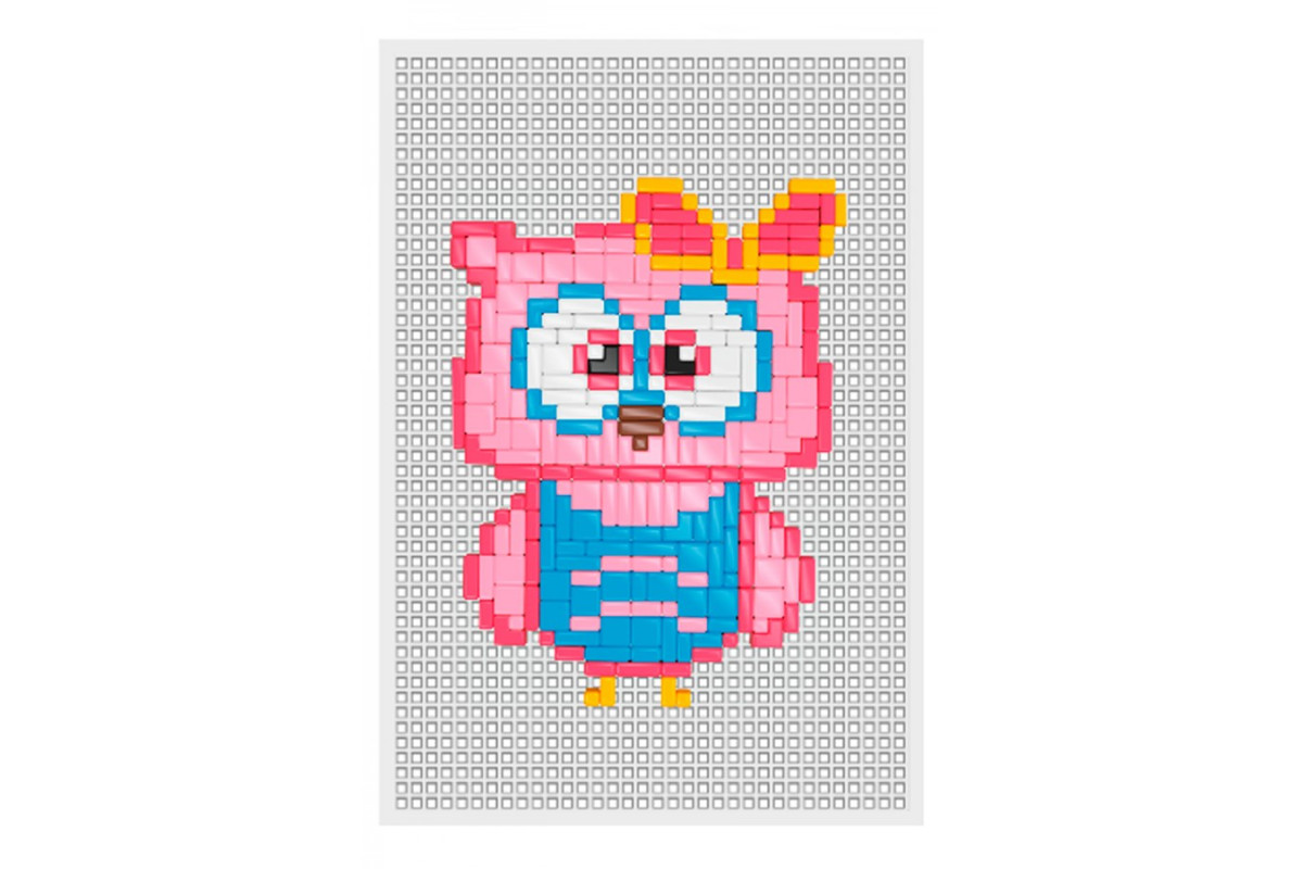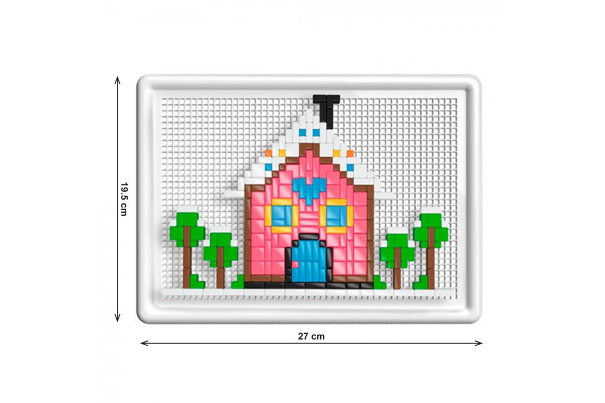 Піксельна мозаїка, як вишивка, малюнок викладається на пластикове поле дрібними фішками різних форм. Всього у комплекті 1188 елементів дев'яти кольорів! Розмір найменшого квадратика 4х4 мм. На допомогу діткам є спеціальний інструмент, яким зручно виймати фішки з поля. Для юних творців у наборі є інструкція, згідно з якою можна зібрати два малюнки: сову у ніжних рожевих тонах та хатинку, вкриту білою сніговою ковдрою. А далі, складати власні малюнки, що підкаже дитяча фантазія.
