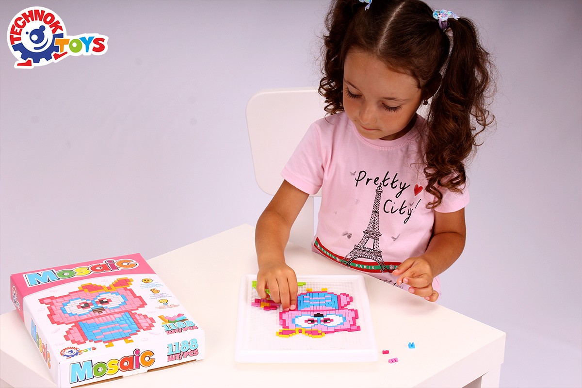 Іграшка "Мозаїка ТехноК" - це відмінна гра для розвитку дрібної моторики, уваги та пам'яті. Викладаючи картинку, потрібно рахувати кожен наступний крок. Це допоможе дітям покращити навички лічби та концентрацію.